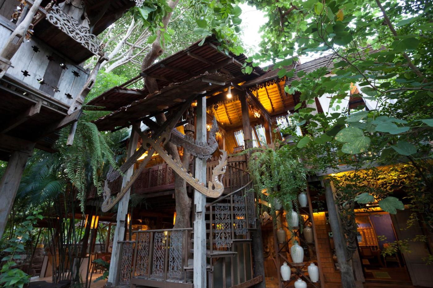 Golden House with Free One Way Airport Transfer. Embraced by a lush garden, this traditional Burmese-Thai style room features high ceiling, 2 private semi-outdoor bathrooms and a large balcony. ;