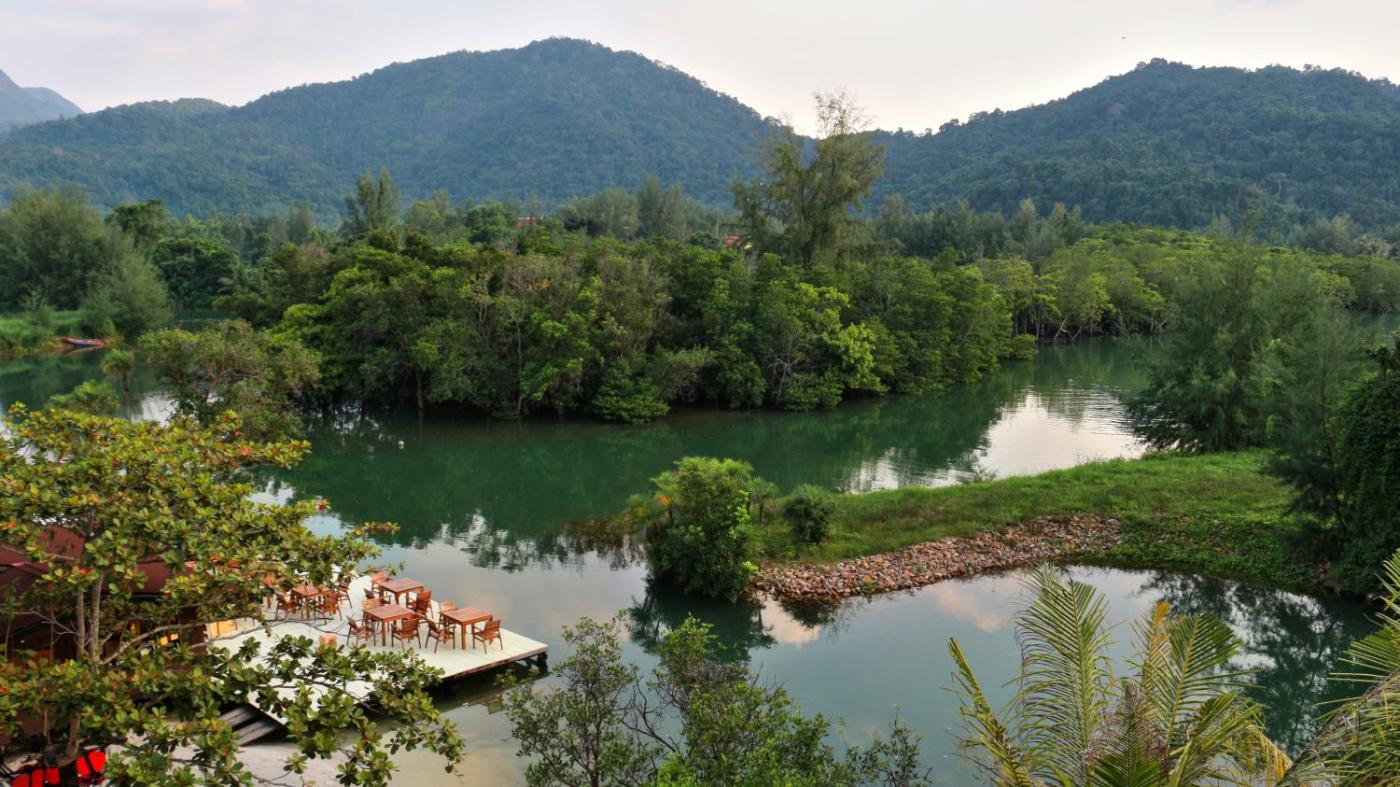 Family Suite. This Family Suite offers a view of Koh Chang. There are 2 balconies in the room, one larger balcony with a big table and 8 chairs overlooking the river, mountains and the harbour. The second balcony is located in front of the bedroom and overlooks the river harbour. There is one king-size bed in a bedroom and twin beds in the living room. Guests can relax on the single and double sofas as well. ;