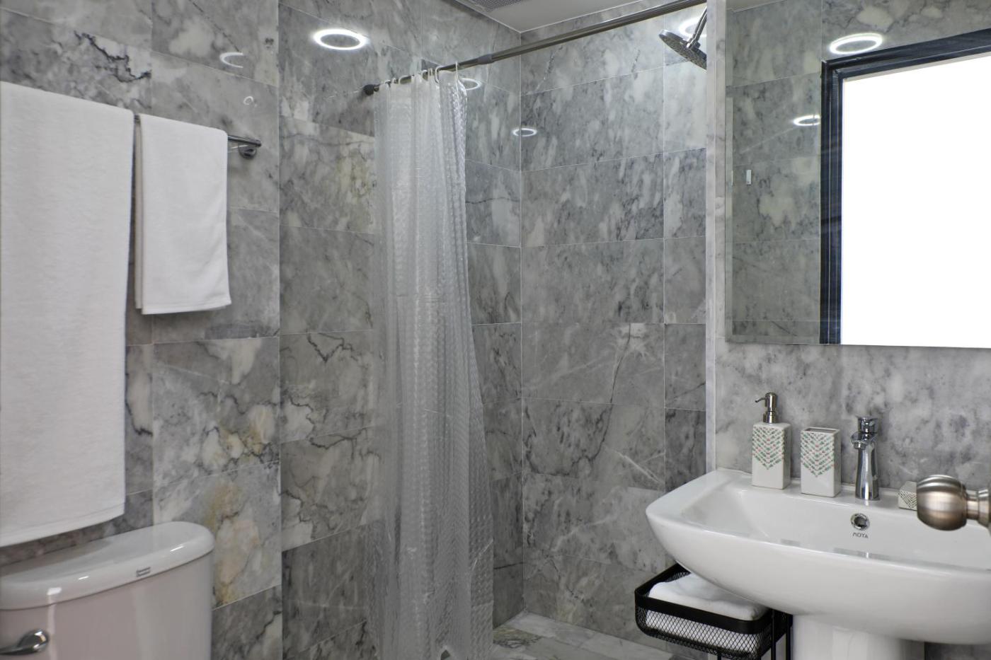 One-Bedroom Apartment. This apartment features a private pool. The air-conditioned apartment has 1 bedroom and 1 bathroom with a shower and a hairdryer. The well-fitted kitchen features a stovetop, a refrigerator, kitchenware and a microwave. Boasting a balcony, this apartment also offers a washing machine, a seating area and a flat-screen TV. The unit has 1 bed.