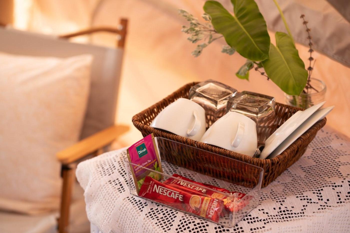 Tent. Guests will have a special experience as the tent offers a fireplace. The tent provides air conditioning, a washing machine, a terrace with lake views as well as a private bathroom featuring a shower. The unit offers 1 bed. ;